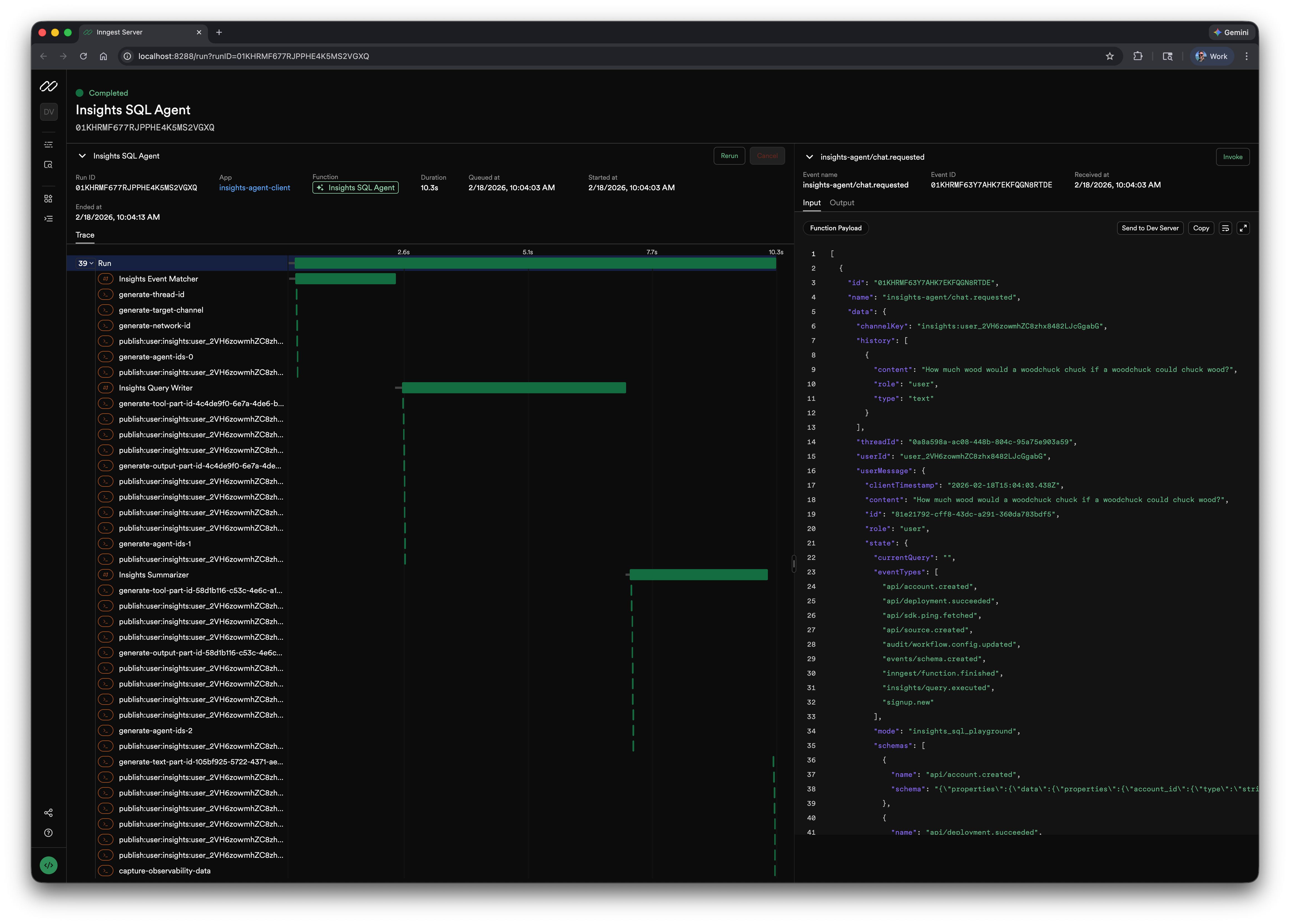 For us as a team, this validated that we can build AI features. Our customers are building agentic applications on Inngest. They need to know we understand what that takes. Shipping Insights AI showed we're not just talking about AI. We're using our own platform to build it.